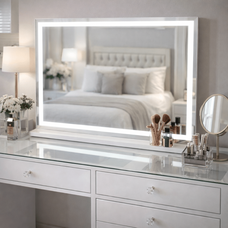 מראת איפור הוליווד דגם "סיגלית" בצבע לבן 80/60 ס"מ
